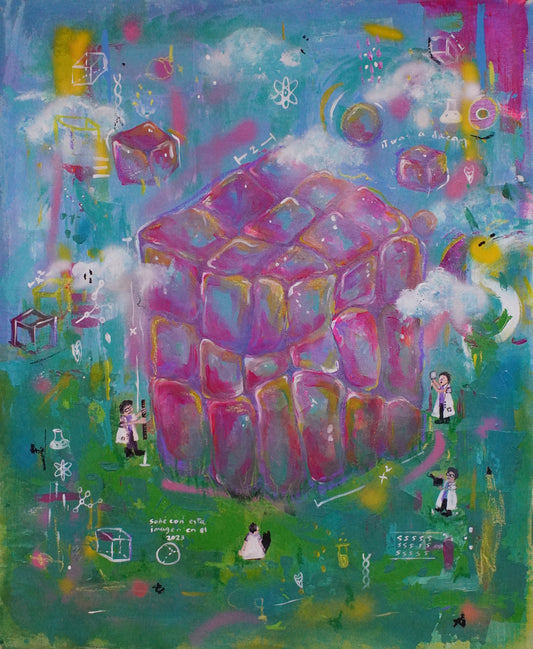 Sara Alarcón's vibrant work reinterprets Peru's ancestral heritage, using a palette of intense, distorted colors that capture the cultural energy of the Andes.