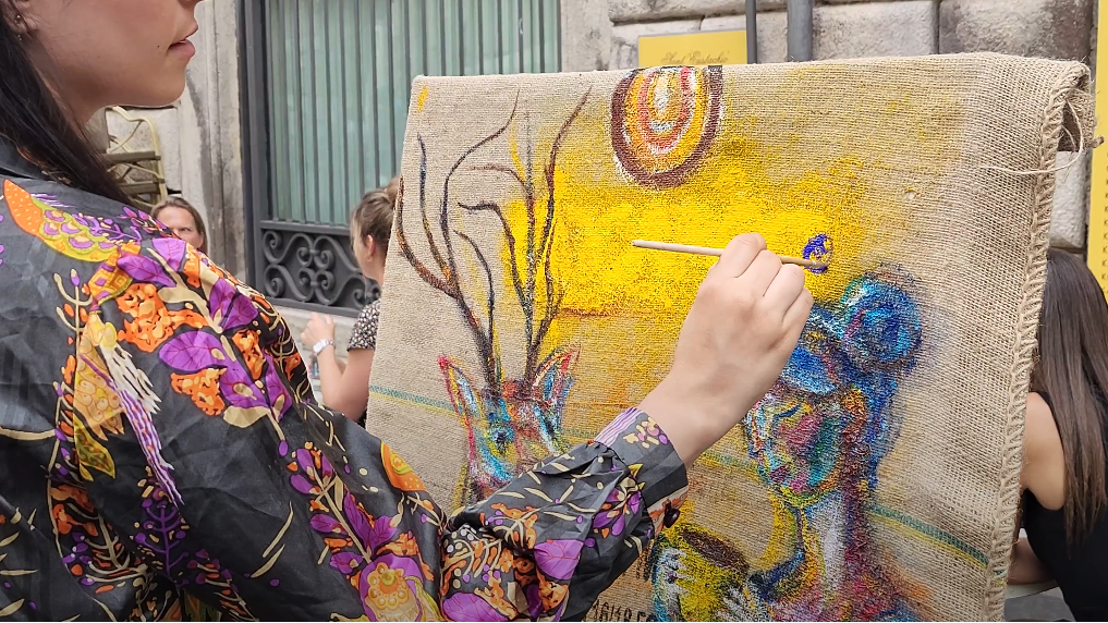 Sara Alarcón reinterprets Italy's classical heritage in modern canvases, using her distorted color technique to evoke the timeless essence of the Renaissance.