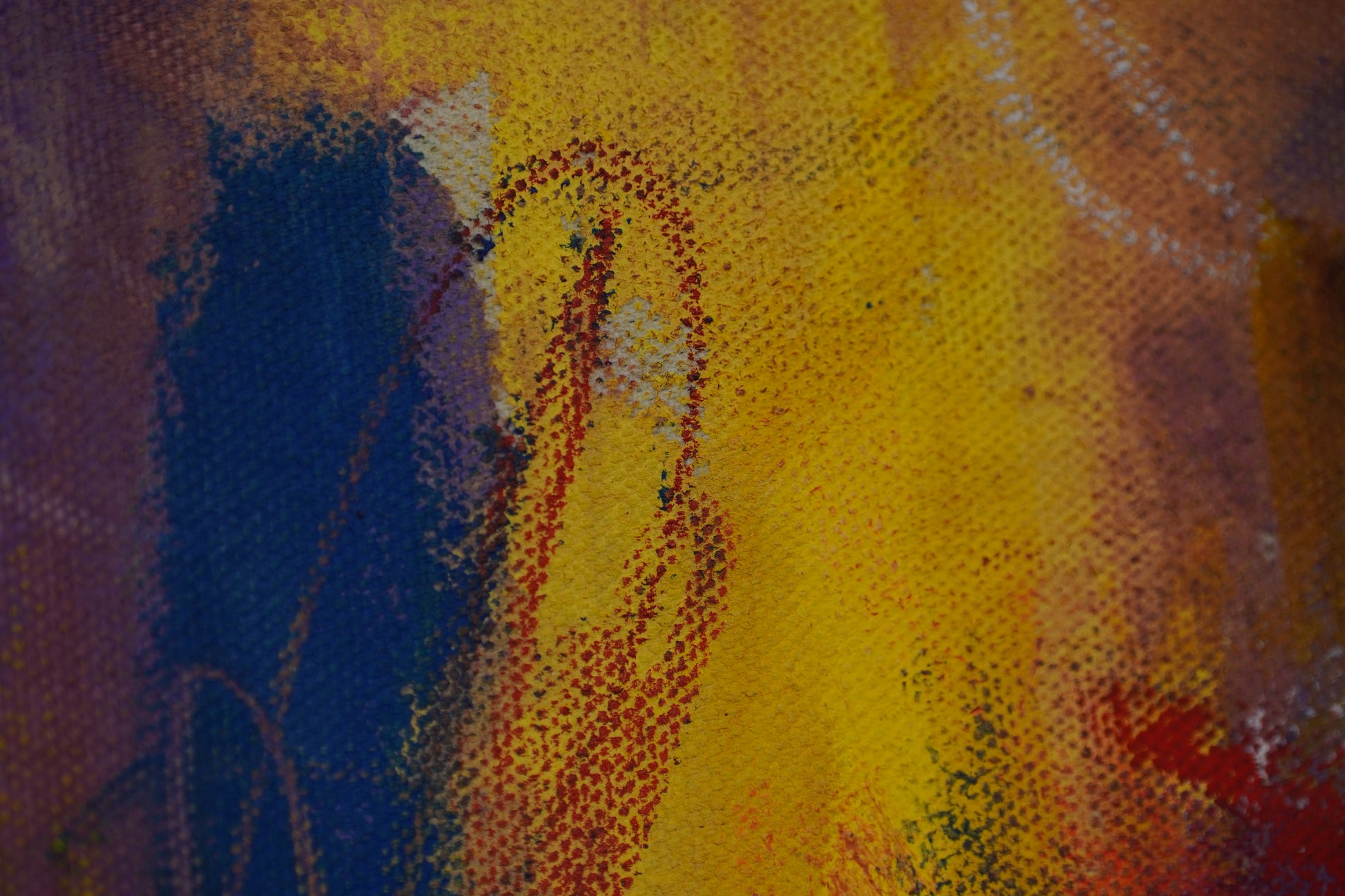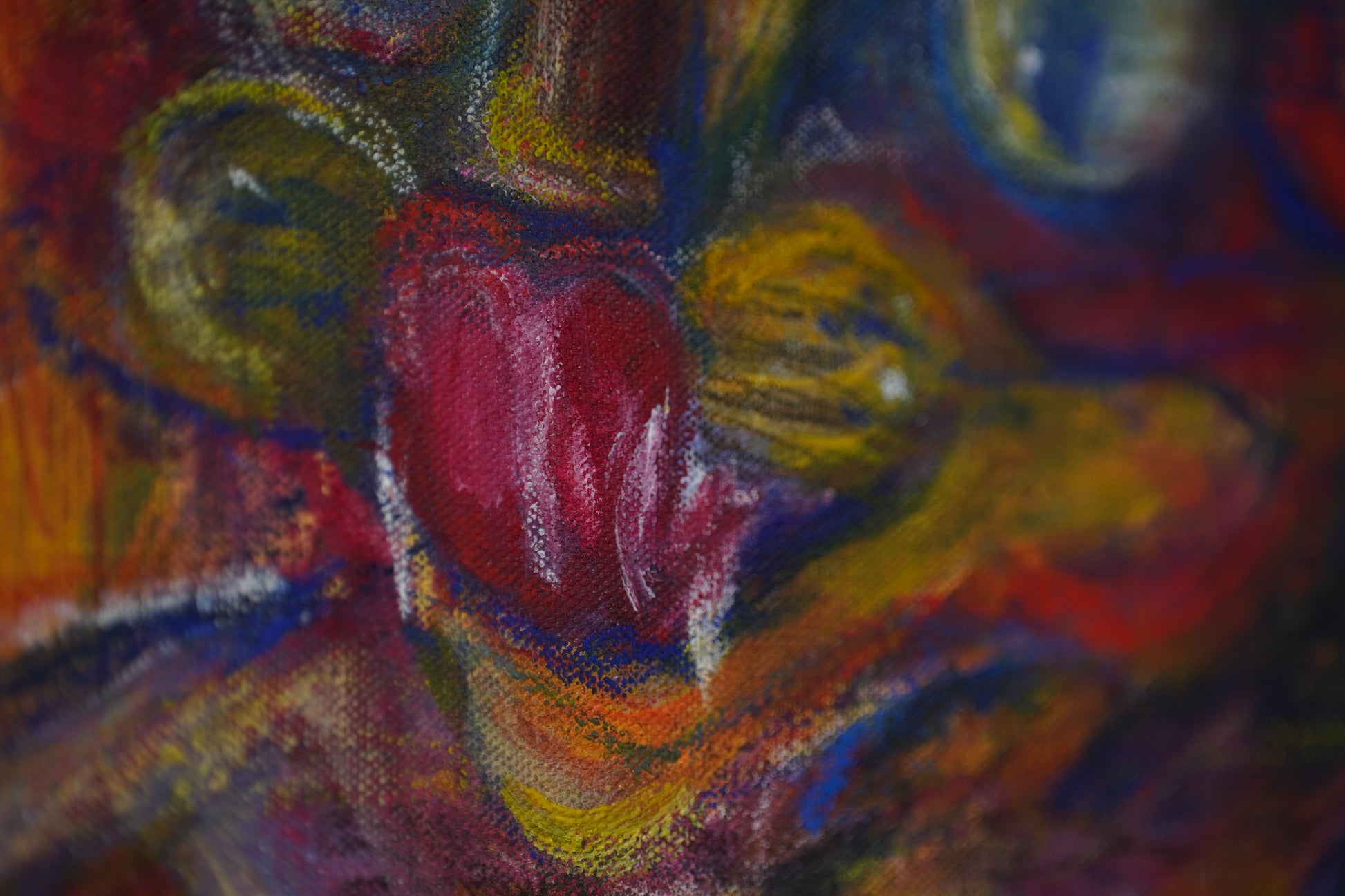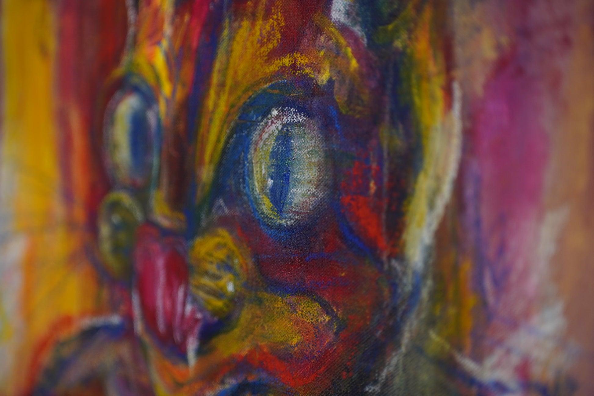 A chaotic, playful spirit emerges through the raw brushwork, proudly bathed in the distinct yellow, blue, and red hues of the Colombian flag.