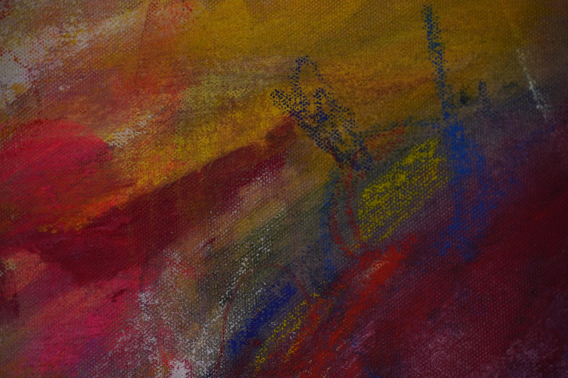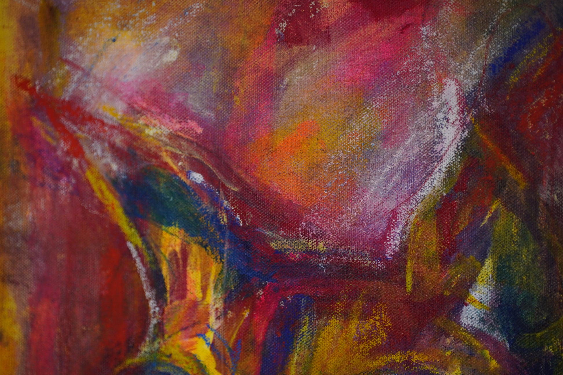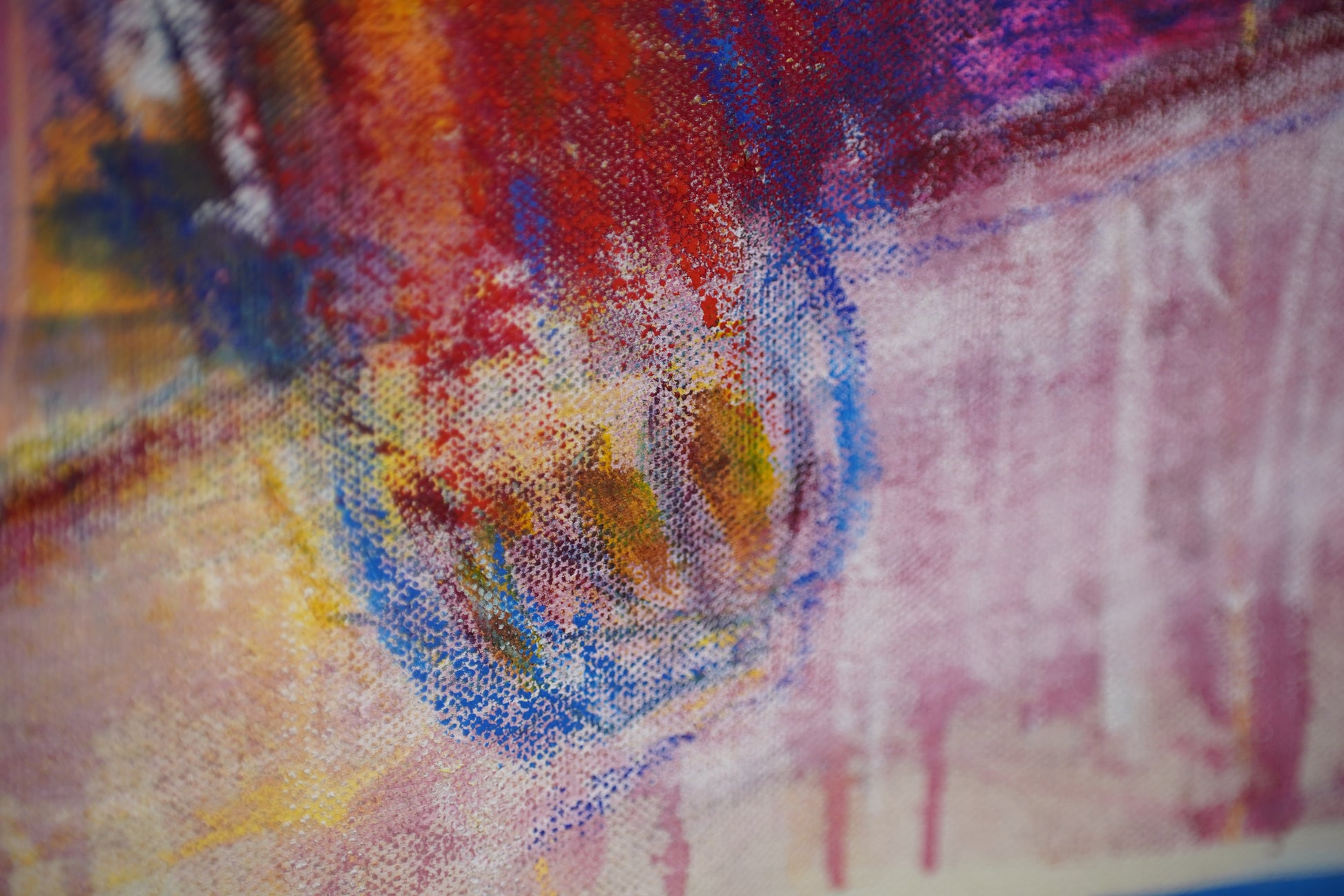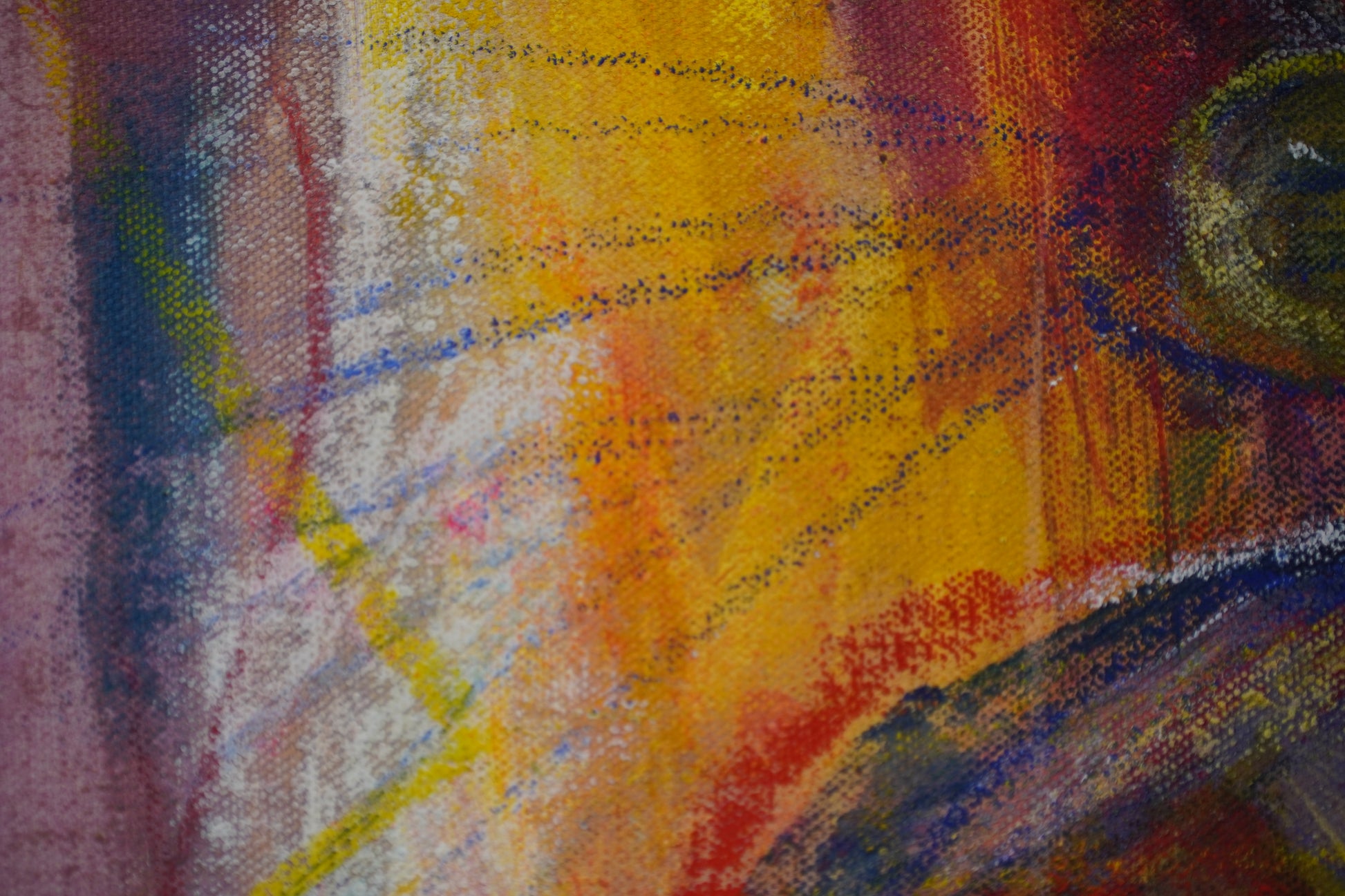 A chaotic, playful spirit emerges through the raw brushwork, proudly bathed in the distinct yellow, blue, and red hues of the Colombian flag.