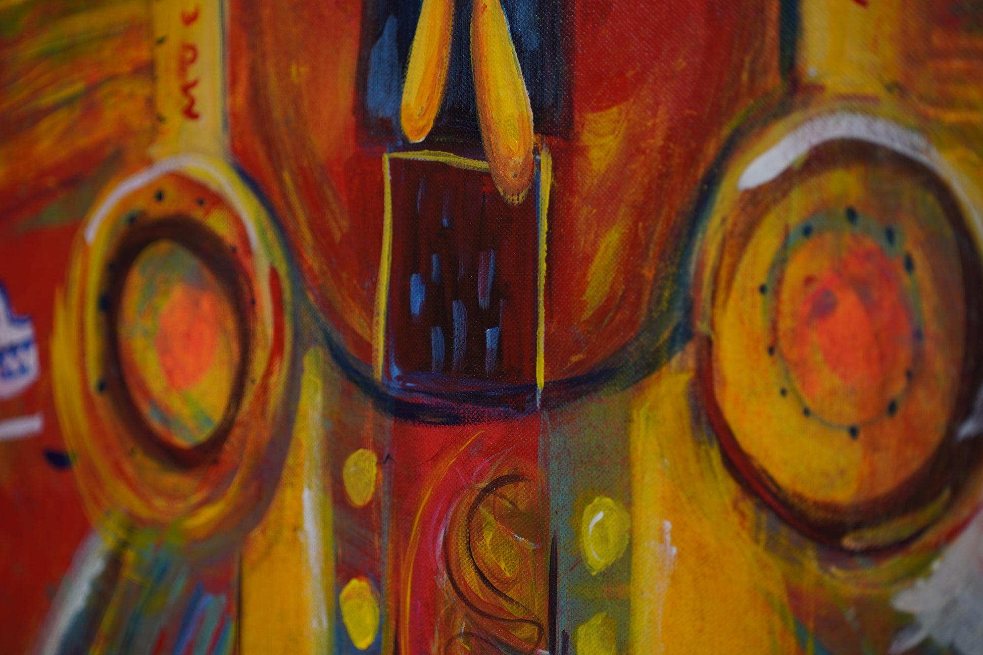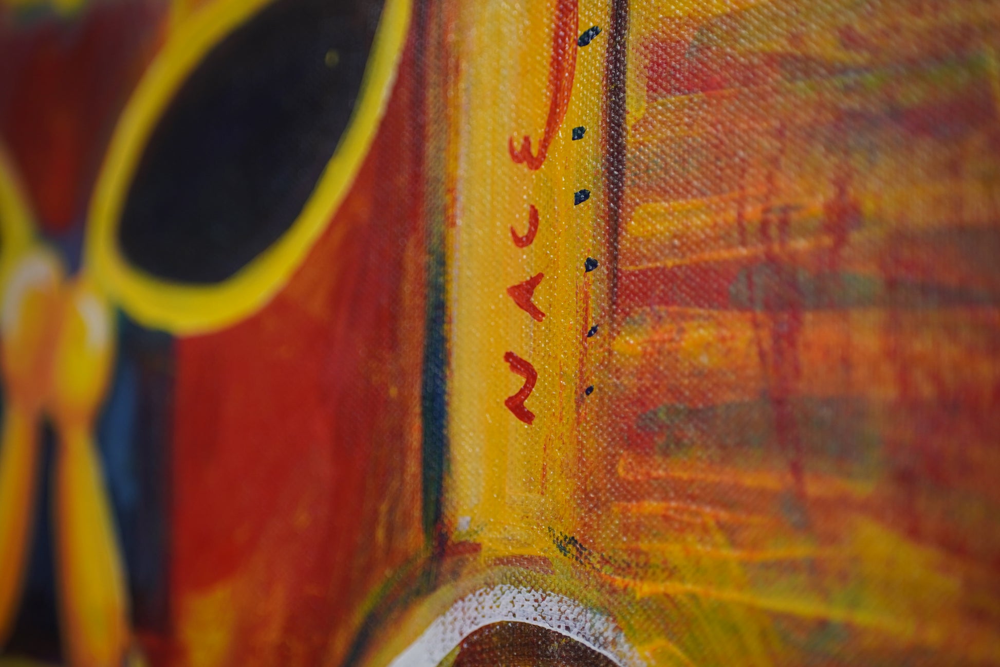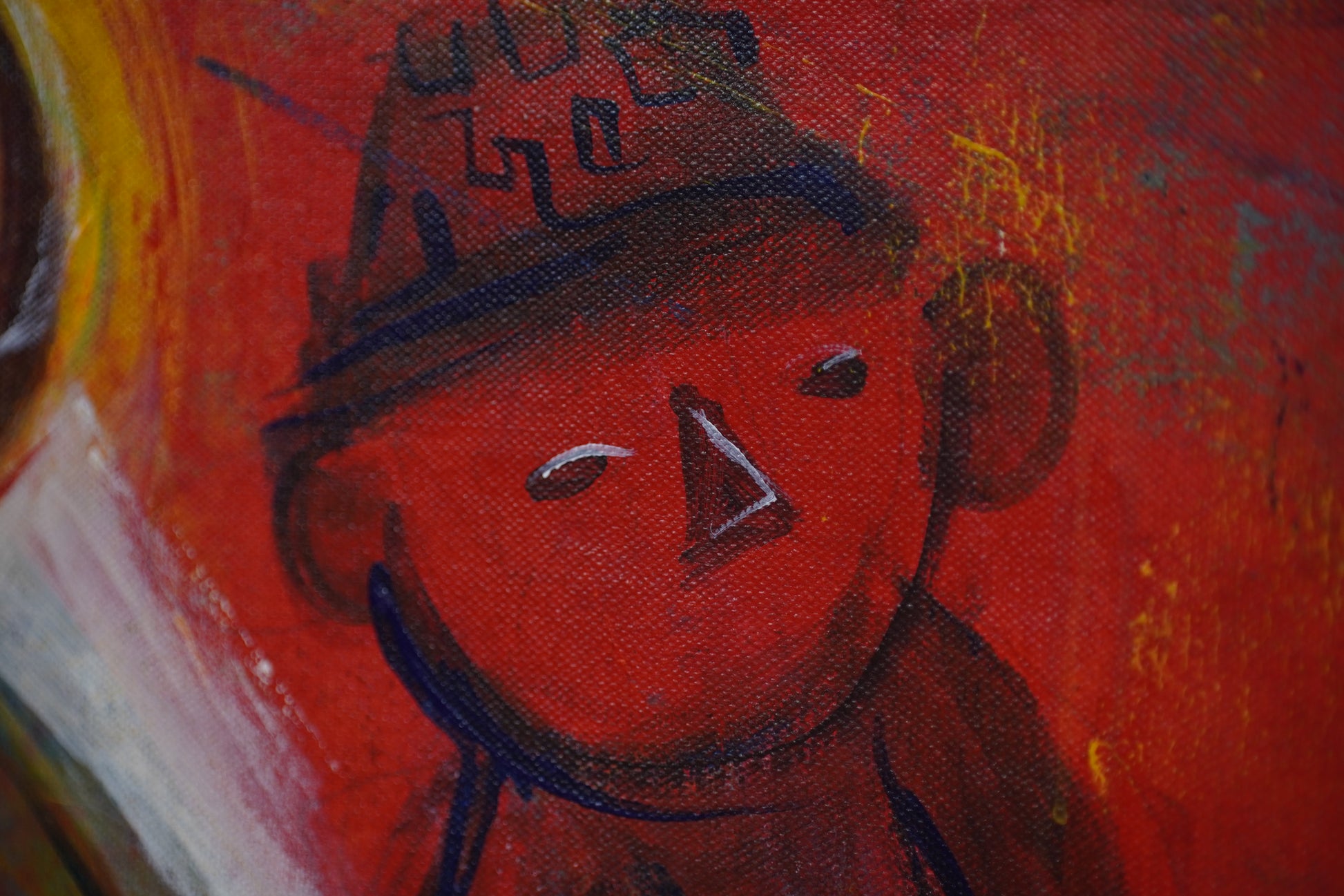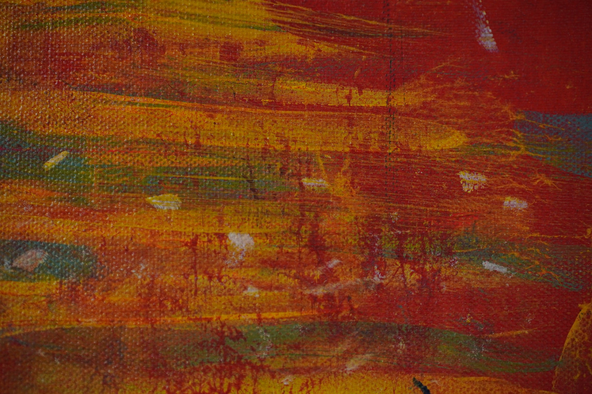 Honoring Inka wisdom where death is not an end, but a doorway. The soul rests in a fetal embrace, a seed waiting to sprout again. The intense red canvas is the eternal horizon simultaneously the sunset of death and the burning sunrise of rebirth.